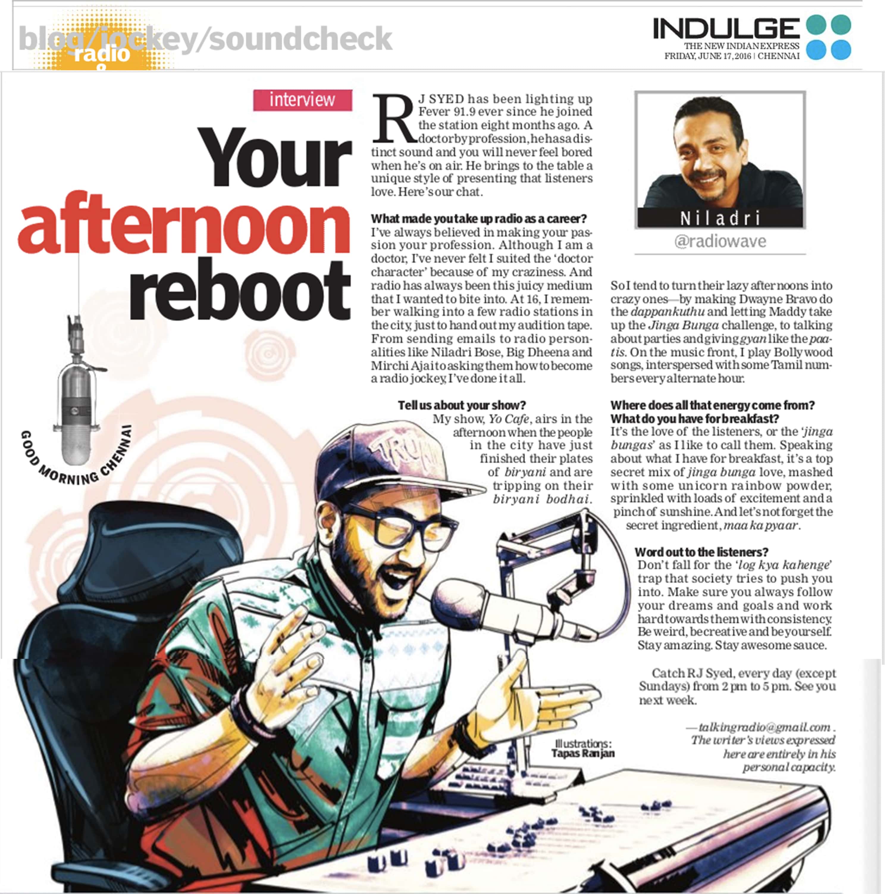 With a voice that can put a smile on anyone’s face and a knack for switching from English to Tamil to Tanglish and back (with a little bit of cinema-style Hindi in there for good measure!), Syed has made a name as an engaging and versatile radio host. He is currently an RJ at Chennai's #1 Bollywood radio station, Fever 91.9 FM, hosting Yo Café (known as “Chennai’s craziest radio show”!). He has also just joined Amazon Radio, as the host of a morning show.