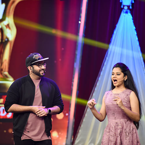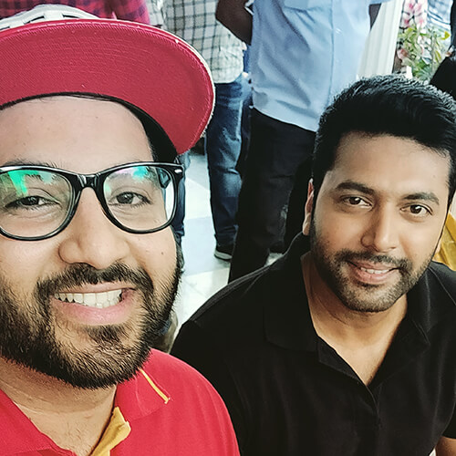 He wows audiences as the host of Fever FM’s super popular Yo Café, which was awarded the title of Best Radio Show (Chennai) by HT Media in 2016 and 2017. He wakes the city up with a smile every morning as the host of Sun TV Networks’ hit breakfast show, Semma Morning. He has collaborated with brands like Phoenix Market City, Palladium, Freshworks, PVR Cinemas, Murugappa Group and Pepsico, and has been the face of numerous digital campaigns as an influencer. He can do everything from emceeing massive concerts to giving an innovative spin to the buzz around a movie launch. He makes viral videos, and has vlogged with international Youtube stars like Superwoman and Bethany Mota. He’s a favourite among top celebs – not only have Anushka Sharma, Sonakshi Sinha and Vijay Sethupathi appeared on his channel… but Madhavan let him massage his back, Amy Jackson exchanged wedding garlands with him and DJ Bravo started dancing dappankuthu – all during interviews!